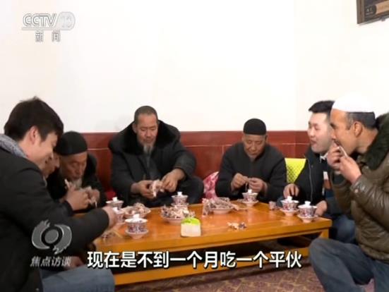 吃平伙是東鄉(xiāng)族老百姓的一個傳統(tǒng),就是大家買一只羊,平攤價格以后搭伙吃羊肉。過去,只有家里娶媳婦、蓋房子這樣的大事,才能吃個平伙。現(xiàn)在生活好了,家里請客的時候也吃平伙,今天,馬麥志要請客,不用大家出份子錢了。他說大兒子在外面打工,自己在干清潔工,媳婦在車間里面炸油馃馃,收入應該有3萬多元。