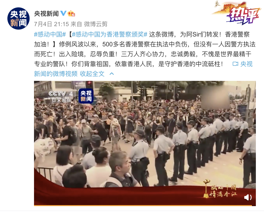 在4日晚央視播出的《感動中國 情滿香江》特別節(jié)目里,我們看到了一群在黑暴威脅面前挺身而出的人,亦感動于他們保衛(wèi)家園、守***治、宣達真相的強大勇氣。他們用實際行動告訴世界:亂港分子的行動有多暴力,香港受到的傷害有多深,他們一個一個“小小的力量”匯聚起的保國安家的力量,都只會更加強大。